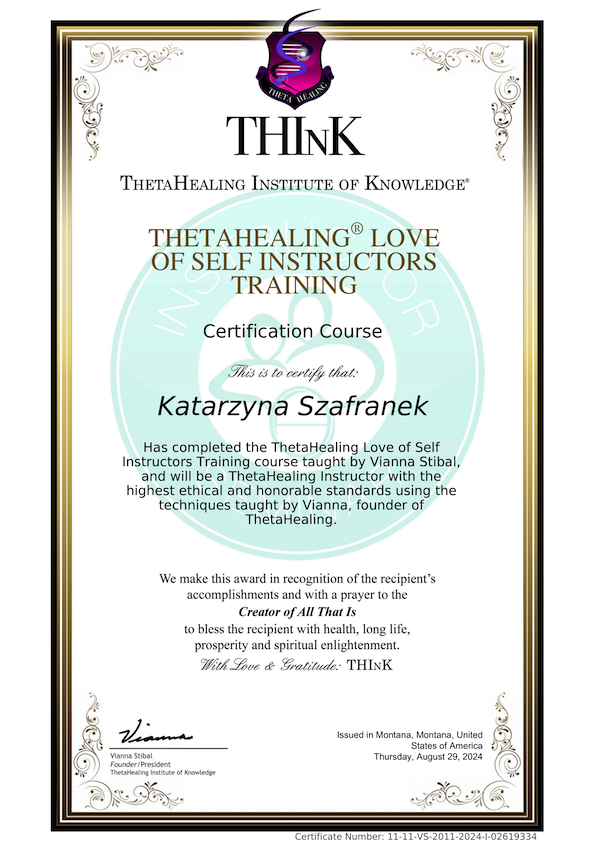 Nazywam się Katarzyna Szafranek, jestem certyfikowanym terapeutą oraz nauczycielem metody Theta Healing®.